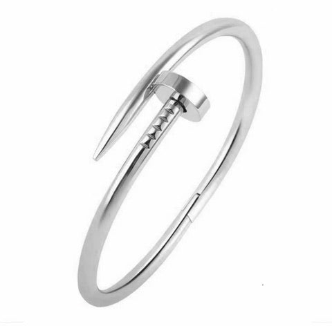 Esta pulsera de clavo, hecha en acero inoxidable con chapa de oro de 14k, es una pieza moderna y duradera. Perfecta para darle un toque contemporáneo a cualquier look.